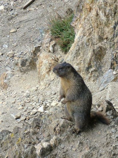 Nachdem wir den höchsten Punkt der Straße auf 3713 Metern überquert hatten, hatte man uns im Visitor Center eine kurze Wanderung am Rock Cut empfohlen. Lasst es euch gesagt sein, selbst nur knapp 1 km Weg leicht bergauf ist in dieser Höhe (3691 Meter) ziemlich anstrengend! Dazu kam die Kälte und der Wind. Dennoch war es wiedermal ein fantastisches Erlebnis oberhalb der natürlichen Baumgrenze auf dem Dach der Rockies auf die Welt unter uns zu blicken. Auf unserer kurzen Wanderung konnten wir noch einen flüchtigen Blick auf die sehr scheuen Pikas (Pfeifhasen) werfen, die in der Alpinen Tundra beheimatet sind. Leider ließen sie sich nicht wirklich davon überzeugen, für ein Foto zu posieren. Meistens hört man ihre Warnrufe eher als dass man sie sieht. Andere Tiere haben sich leider nicht blicken lassen, auch wenn ihre Hinterlassenschaften ihre Anwesenheit belegten. Vielleicht hätte ich mir ja im Visitor Center das Buch "Who pooped in the park" kaufen sollen. Trotz der Höhe findet man hier viele verschiedene Pflanzen, (über 100 Arten), wie zum Beispiel die alpine Sonnenblume oder das alpine Vergissmeinnicht.