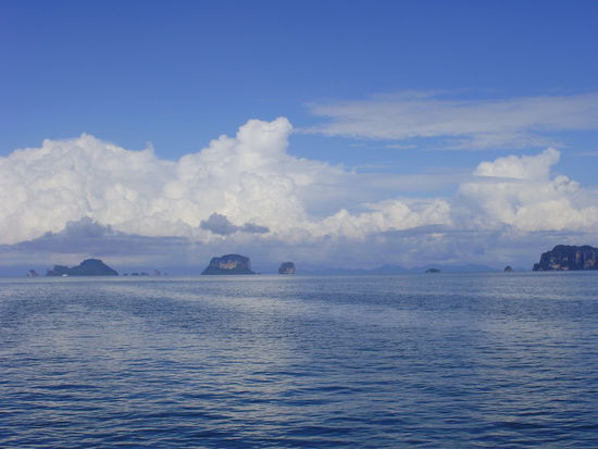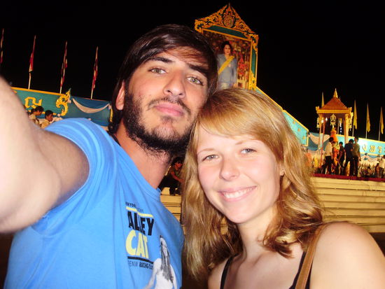Nachdem wir die Entscheidung, in welche Himmelsrichtung wir reisen wollen (Laos oder Suedthailand?) bisher vor uns hergeschoben hatten, haben wir uns im Flugzeug fuer letzteres entschieden. Gut so! Im Landeanflug auf Bangkok konnten wir uebrigens das eigens fuer unsere Ankunft organisierte Feuerwerk aus der Luft betrachten. Boese Zungen behaupten, es sei nur anlaesslich des Geburtstags der Koenigin gewesen- wir sind da aber anderer Meinung! Am Flughafen mussten wir dann auch ein letztes Mal Robins Sitznachbarn sehen. Der typische Sextourist in knallenger Jeans und schickem grauschwarzem Militarystring, den er uns im Schlaf in voller Breitseite praesentierte. Wir hoffen, ihn nochmal irgendwo zu treffen...oehm.