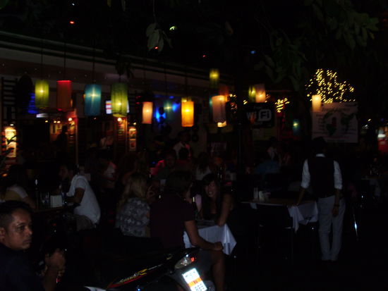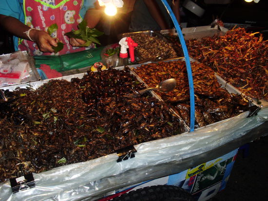 Am Abend gings dann erst einmal raus aus dem Tourieck und rein ins Getuemmel voller Thais, thailaendischer Rockstars und Garstaenden am Wegrand (inklusive gegrillter Maden und sonstiger Viecher). Obwohl wir natuerlich nicht daran gedacht hatten, einen Stadtplan mitzunehmen und einfach mal irgendwo hin gelaufen sind, kamen wir dann doch wieder irgendwie zurueck in unsere Strasse. War aber mehr Zufall...