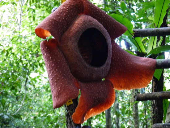 und dann endlich, endlich haben wir gefunden was wir suchten. Und zwar haben wir diese lange Wanderung nur gemacht um die größte Blume der Welt zu finden, die Rafflesia Sie blüht nur alle 4 Jahre für 7 Tage und die Naturschützer sind sich einig, dass sie nicht mehr sehr viele Jahre überleben wird. Also fühle ich mich jetzt ganz besonders, dass ich sie (noch) sehen konnte