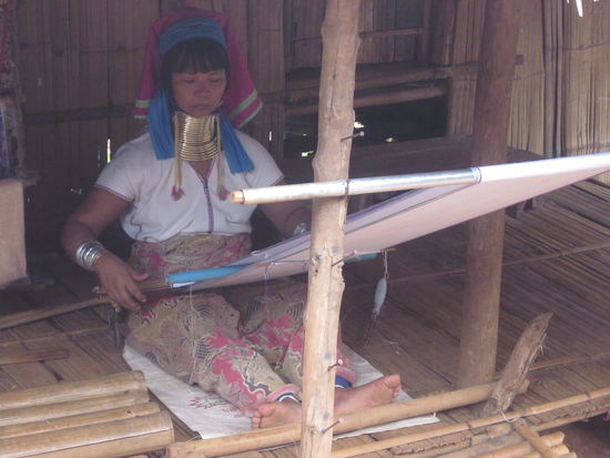 Danach sind wir weiter ins "Long Neck Village" gefahren. Ich wollte eigentlich gar nicht rein, da ich es mir schon schrecklich touristisch vorgestellt habe, aber Carola meinte nun sind wir schonmal hier. Also überreden lassen und trotzdem Recht behalten. Es war einfach nur fake. Ich weiß nicht mal ob die Leute wirklich hier leben, könnte mir vorstellen, dass die abends alle in ihr richtiges Zuhause fahren. Das "Dorf" sah aus wie ein großer Souveniershop! Nee, nee, einfach nicht mein Ding. Es wurde auch mal wieder so gut wie nichts erklärt, also warum die das machen weiß ich nach wie vor nicht.