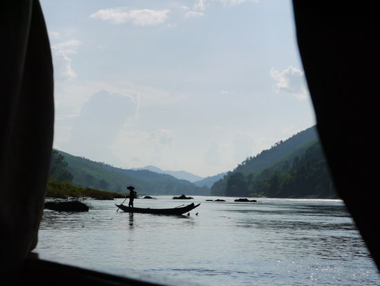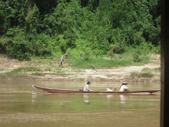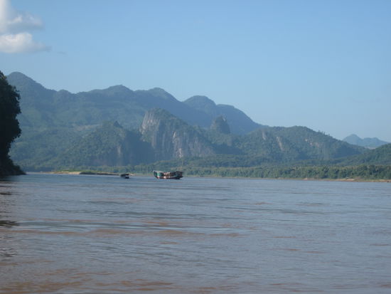 Nach den ersten 7 Std. haben wir in *Pak Beng* Stop gemacht und haben hier übernachtet. Gerade aus dem Boat gestiegen, kamen sämtliche Kinder angelaufen und wollten alles haben, was wir in der Hand hatten, wie Getränken, Chips, Kekse usw. Ich hatte wirklich das Gefühl, dass sie dafür trainiert wurden. Total nervig und auch nicht mehr sß. Es ist ein Mini-Ort und im Lonely Planet wurde gewarnt, dass hier alles geklaut wird aus den Räumen was nicht nied und nagelfest ist. (lustige Redensart, übrigens!) Auf jeden Fall waren wir dann nur kurz was essen, haben alles wichtige mitgenommen und uns dann noch gemütlich nen Film angeschaut und den Laptop für den nächsten Tag aufgeladen. Morgens ging es dann zu einer unbestimmten Uhrzeit weiter, jeder hatte andere Informationen, sodass welche 2 Std. schon im Boot saßen und Carola und ich so ziemlich als Letzte kamen