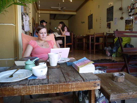 Am nächsten Tag konnten wir uns nicht vorstellen direkt wieder im Bus zu sitzen, unser Po ist schon platt genug. Daher haben wir eine Pause eingelegt, uns die Stadt angeguckt, wirklich nichts besonders. Am Flußufer gab es wieder einen kleinen Markt, aber das war eher etwas für Locals. Wir haben dann ein super-süßes Café (Café Anakot) gefunden und haben uns hier etwas ausgeruht