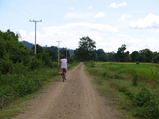 sind um die Mittagszeit angekommen, haben überraschenderweise ein wirkliches schönes Bungalow direkt am Fluß für einen erschwinglichen Preis bekommen, schnell geduscht und uns dann ein Fahrrad gemietet. Das war sooo cool. Erstmal haben wir uns Don Det genauer angeschaut, wo es aber ausser dem "Kern" mit Bars und Restaurant nur Reisfelder gibt.