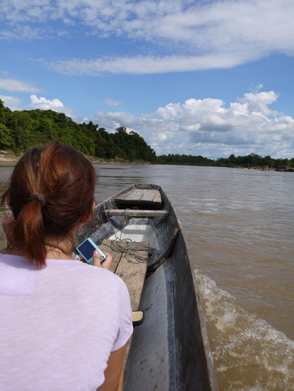 Das besondere hier an diesen Inseln ist, dass man seltene *Irrawaddy-Delphine* beobachten kann. Das wollten wir natürlich auch. Haben noch kurz überlegt, mussten wieder ein Boot mieten, aber ich denke mir jetzt bei jeder Gelegenheit, hm, andere Leute sitzen gerade im Büro. Also was sind schon 6,00 €. Haben uns auf den Weg gemacht und gehofft nicht in den ekeligen Fluß zu fallen