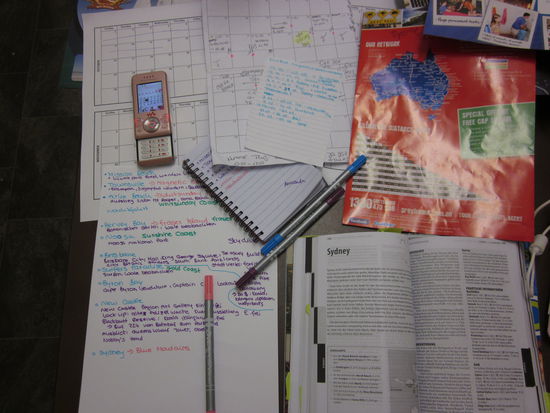Gesagt getan, voller Vorfreude konnte ich gar nicht schlafen, mit Lonely Planet (geliehen), bunten Stiften und Kalender bewaffnet und reichlich Ideen im Kopf ging es auch schon los.