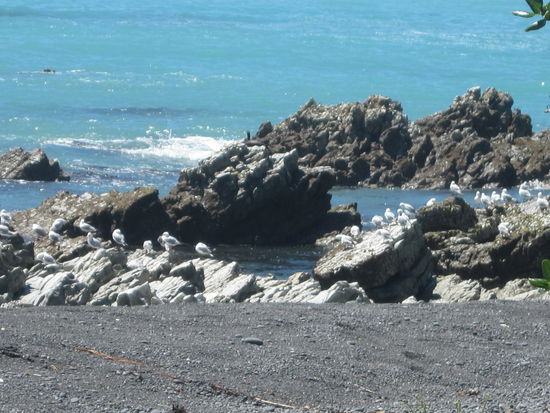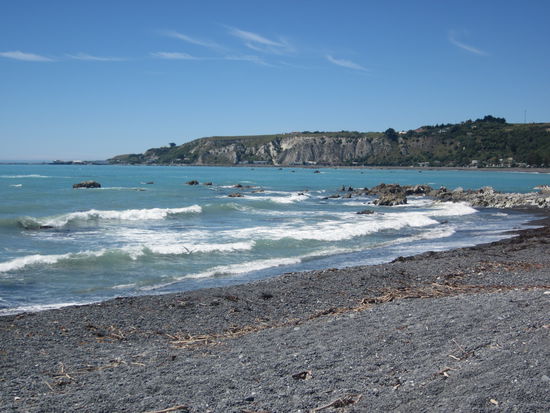 Ich bin positiv überrascht von dem kleinen Örtchen. Es gibt einen schönen (hm, wie nennt man das, wenn es nicht Sand sondern schwarze Steine sind, eher kein Strand) was auch immer und es ist richtig nett! Habe die ersten Tage in der Sonne gesessen und die letzten Tage in Neuseeland genossen