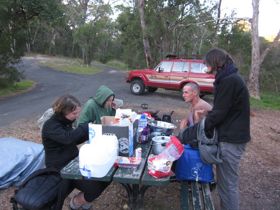 Sind mit noch einer Deutschen und Amy aus den USA in die Blue Mountains gefahren. Haben da gecampt, keine gute Idee muss ich euch sagen, hier beginnt langsam der Winter und es war echt einfach nur arschkalt. Die anderen haben dann ne Wanderung gemacht, ich hab in der Zwischenzeit meinen Lonely Planet gelesen. Und schließlich muss ja auch jmd auf das Camp aufpassen