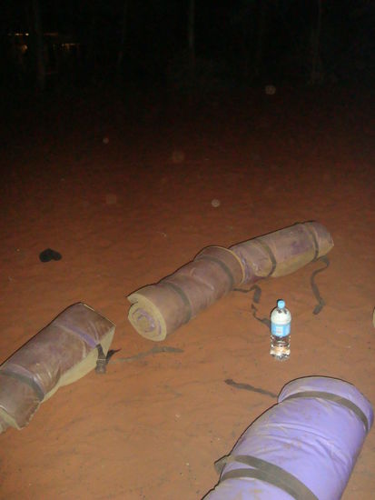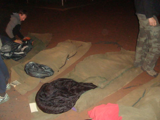 Jeder hat einen *Swag* bekommen, dass sind die australischen Schlafsäcke, die irgendwie jeder wohl im Haus hat. Bei langen Autofahrten schmeißt man sie einfach auf den Boden, pennt ne Runde und morgens gehts weiter. Ich kannte das von einem Australier, daher dachte ich alles ist gut. Leider wusste ich nicht das er darin noch weiteres Zubehör dazu gekauft hat und somit war es sehr sehr kalt. Man tut nämlich noch einen Schlafsack rein und ich reise nur mit nem Sommerschlafsack, was für diese Jahreszeit echt einfach zu kalt ist. Bin froh das ich irgendwann einfach drüber eingeschlafen bin. Das tolle ist, wenn man aufwacht sieht man den Sternenhimmel über sich.