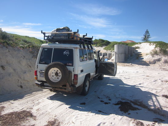 Das Geld ist hier in Australien schneller weg als man gucken kann, also hab ich mich nochmal durch den Tag gequält und mittags eine sms von Patrick bekommen. Er ist Deutscher (leider, hatte mir eigentlich vorgenommen nicht mit Deutschen zu reisen, will jez aber einfach auch endlich mal weg) Er will morgen früh los fahren, hat Zeit ohne Ende, einen Landcruiser mit eingebautem Bett und ansonsten alles was man zum campen braucht. Haben uns nach der Arbeit getroffen, alles gut und am nächsten Morgen um 7.00 Uhr gings auch schon los!