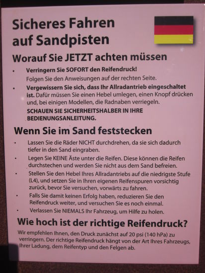In diesem NP sollte man wirklich das Auto fahren beherrschen! Denn es sind 4WD Strecken, bevor man hinein fährt gibt es sämtliche Anleitungsschilder in allen Sprachen.