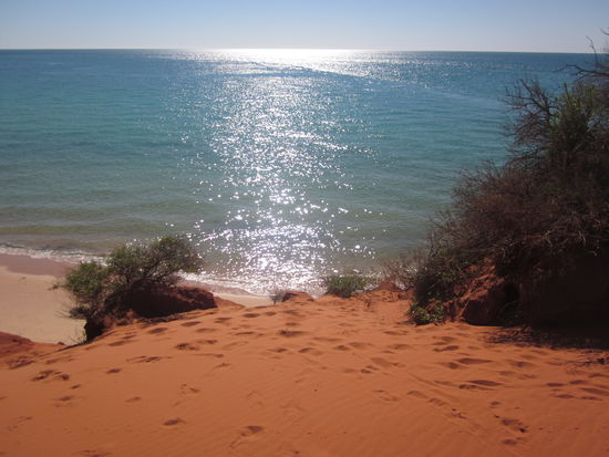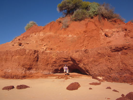 In der nächsten Bucht bin ich echt aus dem Staunen nicht heraus gekommen, sooo roter Sand, herrlich! Hab mir einfach mein Handtuch mitgenommen und mich an den Strand gesetzt, ist schließlich ne Tour für uns beide und ich zahl die Hälfte! Haben uns dann nachher zusammen alles drum herum angeschaut, soo toll!