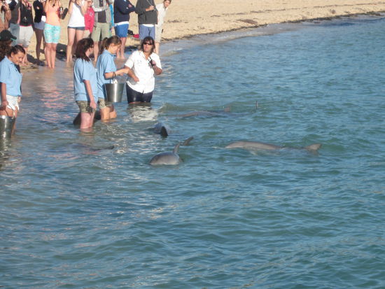 Monkey Mia ist für seine Delphine bekannt, diese kommen jeden morgen zwischen 8 und 10 Uhr um sich ihr Frühstück abzuholen