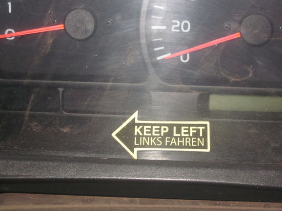 Für die dummen Deutschen haben sie auch lieber mal das "links fahren" auch auf deutsch ins Auto geschrieben, haha
