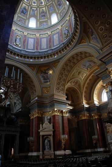 Weiter geht`s zur Hl. Stefan Basilika, der größten Budapester Kirche. Sie wurde 1851 bis 1905, zuerst klassizistisch, dann in Neorenaissance, erbaut und bietet 8500 Menschen Platz und die Kuppel ist 65 m hoch. Diese Kirche ist beeindruckend und edel zugleich.