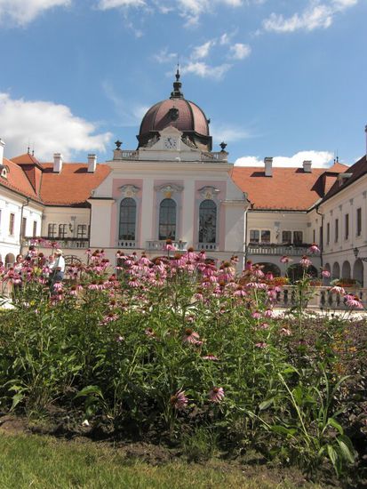 Es ist das größte Barockschloss Ungarns und wurde im 18. Jhd. für Graf Antal Grassalkovich, einem Vertrauten Maria Theresias, errichtet. Berühmt wurde es aber erst durch unsere Kaiserin Sissi, die dieses Schloss nutzte um vor der strengen Etikette des Wiener Hofes zu flüchten. Wir machten eine einstündige Besichtigung - schöööööön...