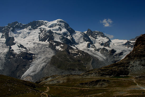 Der nächste Tag beginnt mit Nebel, aber Meinhard ist wieder voll fit und motiviert, aber nicht sehr entscheidungsfreudig. Zuerst wird ein gemütlicher Tag mit Gornerschlucht beschlossen - denkste - wieder umziehen, weil jetzt die Sonne rausgekommen ist und er auf den Gornergrat will. Wir marschieren wieder voll adjustiert Richtung Bahnhof als Meinhard merkt, dass er seine Geldbörse (mit allen Tickets) vergessen hat. Macht ja nix! Nach einer viertel Stunde im Laufschritt war er ja wieder da. Ich hab` natürlich in der Zwischenzeit auf die Rucksäcke aufgepasst.