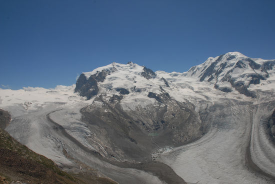 Wir erwischen noch die Abfahrt um 11:12 und genießen die 35-minütige Fahrt mit dieser tollen Bergbahn. Wenn man einen Sitzplatz ganz hinten auf der rechten Seite erwischt, hat man eine tolle Aussicht auf die Gornergratbahn die sich durch die fantastische Bergwelt nach oben schlängelt. Der Ausstieg ist auf 3089 m und wir spazieren noch ganz auf die Spitze und genießen diesen herrlichen Rundblick auf den Monte Rosa, Liskamm, Castor, Breithorn, Matterhorn,... mit einer Tasse Kaffee auf der Restaurantterrasse.