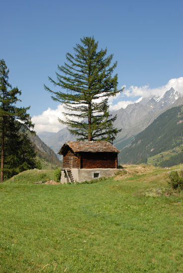 Weil wir heute so wenig gegangen sind kommen wir noch auf die Wahnsinnsidee vom Ortszentrum rechts hinauf zum Triftweg zu spazieren. Eine halbe Stunde steil bergauf - es ist heiß und ich bin müde. Um 16:40 kommen wir bei einem Bach an und Meinhard will mich aufmuntern, aber es kommt falsch an und ich habe einen kleinen "Aussetzer". Laut Wegweiser geht`s nur mehr 15 min runter - falsch - nach 10 min steil bergauf wieder die gleiche Tafel: 15 min nach Zermatt (Kirche).