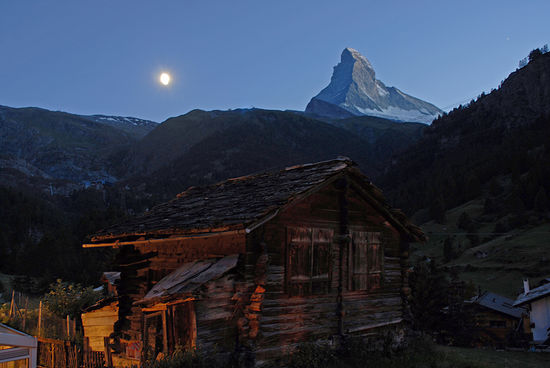 Das war der absolut perfekte Abschluss für unseren Urlaub in Zermatt. Bis spät abends sehen wir keine Wolke am Himmel und das Matterhorn glänzt in der Sonne...