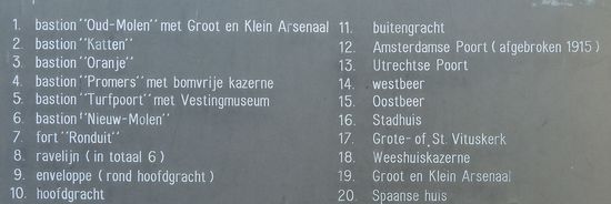 Als Vauban-Fans haben wir uns für die Fahrt nach Amsterdam zum besichtigen Naarden ausgesucht. Wir schaffen den Absprung um 7.45 Uhr und sind nach 220 km in Naarden, wo wir auf einer Bastion einen Parkplatz finden, von dem wir den Rundgang (3,5 km) um die Vauban-Festung beginnen.
