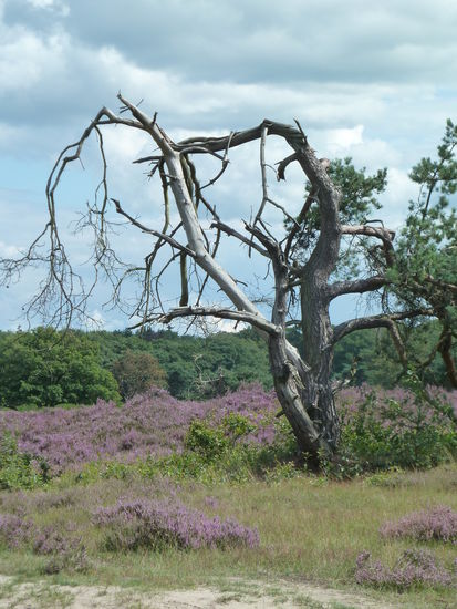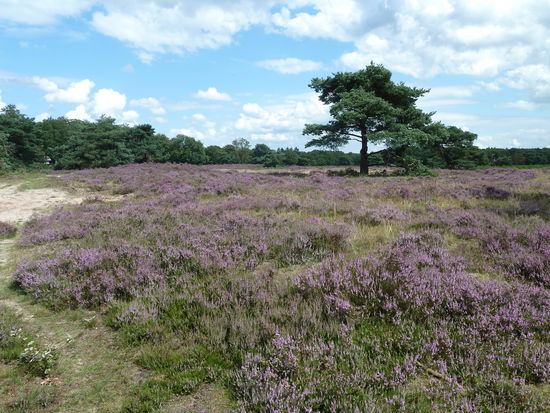 Auf der Weiterfahrt zum Muiderslot kommen wir durch eine Gegend mit tollen reedgedeckten Villen und einer blühenden Heide. Wir müssen einfach ein Stück dort laufen.