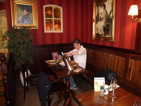 Schließlich landen wir im Café de Koperen Vis und bestellen jeder drei Seezungen und ordern dazu eine Fasche Colombard aus Südafrika.