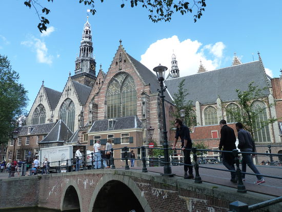 Nur wenige Meter entfernt liegt die Oude Kerk, das älteste Baudenkmal der Stadt Amsterdam. Man kann der Kirche die 5 Jahrhunderte Architekturgeschichte ansehen.