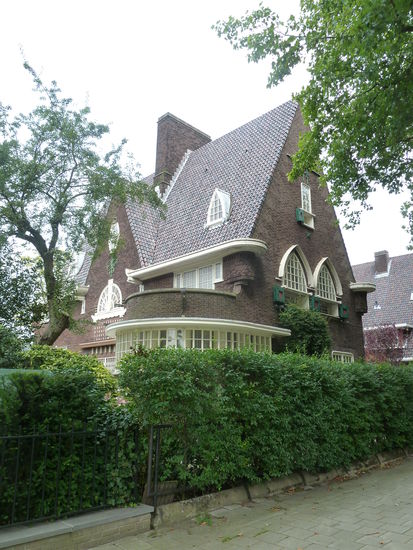 Wir gelangen hernach in ein reines Wohngebiet, dessen Villen aus der gleichen Zeit stammen und entsprechend Elemente der Amsterdamer Schule aufweisen. Entlang der Apollolaan finden sich zahlreiche Beispiele: