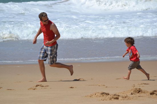 Der nächste Morgen kann sich sehen lassen, um 6Uhr ist die Sonne zwar noch nicht über die Dünen auf unseren Stellplatz vorgedrungen, doch wir begrüßen einen wundervollen Tag direkt am Pazifik mit tosenden Wellen und Kalendermotiven am Strand 50m entfernt. Wir beobachten einige Delfine oder Wale vom Strand aus und 5m hinter unserem Camper besucht uns ein Iguana von immerhin 50cm Länge. Der Zeltnachbar meinte nur, letztes Jahr wäre hier ein 3x so großer rumspaziert...