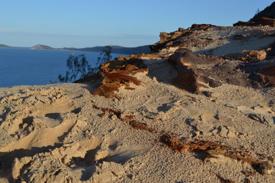 Am späten Nachmittag besuchen wir Carlo Sandblow - ein vielfarbiges Dünengebiet, aber direkt am steilen Ufer mit genialem Ausblick bis Fraser Island und wohl namensgebend für Rainbow Beach - und erleben erneut sensationelle Fotomotive im Abendlicht.