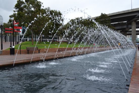 Am nächsten Morgen gibt es Frühstück vom schmalen Buffet - für ausgehungerte Camper trotzdem gut. Gegen 10:30 starten wir unseren letzten Tag in Sydney, leider ist das Wetter nicht so schön wie erwartet. Wir beschließen, zum Darling Harbour zu laufen. Es ist recht kühl, mal ein Schauer, Matteo schnarcht im Buggy. Wir erobern den neuen Spielplatz (war vor 8 Wochen noch im Bau) und kämpfen gegen die penetranten Möwen an der Hafenmeile, die unser Essen wollen und die Kinder verschrecken. Danach verabschieden wir uns hier und fahren mit dem Free Bus zum Circular Quay. Harbour Bridge und Oper im Blick geht es zum Government House. Dieses darf man heute leider nicht mehr besichtigen (es ist nach 16 Uhr) und so schlendern wir zur Oper. Hier bleiben wir einige Zeit, machen Bilder und sehen uns etwas im Inneren um. Zurück am Circular Quay schauen wir noch bei den Straßenmusikern und in Souvenirshops vorbei, ebenso im Customs House, einem der ältesten Gebäude der Stadt. In der Dämmerung steigen wir in die S-Bahn und kleben wie kleine Kinder an der Scheibe, bis der letzte Blick auf Harbour Bridge und Oper der Tunneleinfahrt weicht - (wann) werden wir diesen Ausblick je wieder live haben??? Von Central laufen wir zurück Richtung Hotel und kehren erneut beim Tankstellen-Chinesen zwischen den heimischen Taxi-Fahrern ein.