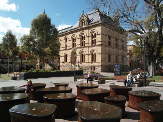 Das Zentrum ist übersichtlich und wurde auf dem Reißbrett entworfen. Altes ist im Kolonialstil erbaut, Kirchen, Bahnhof, Parlament und viele Wiesen und Parks entlang des Rivers laden zum Verweilen ein. Vorbei an Museen und Universität erreichen wir die Randle Mall - Australiens erste Shopping-Fußgängerzone. Wir finden ein Fotofachgeschäft mit einem verträglichen Angebot, vergleichen nochmal kurz mit amazon.de und schlagen dann schweren Herzens zu. Eine neue Nikon, die die Urlaubskasse beim aktuellen Euro-Kurs erheblich schmälert - ein lachendes & ein weinendes Auge! Zumindest ist nun dieses Poblem aus der Welt und wir sind für das nahende Ziel Kangaroo Island bestens gerüstet.