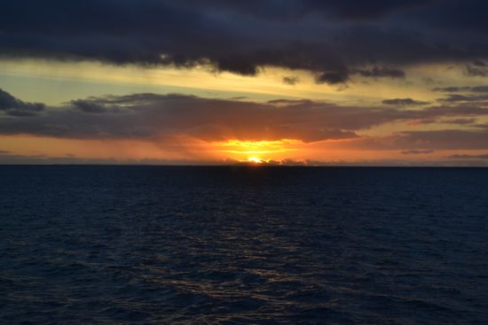 Nachdem die Vorräte aufgefüllt sind, müssen wir uns ranhalten, denn unsere Fähre nach Kangaroo Island haben wir soeben kurzfristig online reserviert. Wir haben uns jeweils für die Abendfähre entschieden (rein aus Kostengründen - 250€ 'Super-Sparpreis' für 2x 45min Fahrt) und wollen nun ganze 3 Tage im hochgepriesenen und vielfältigen Naturparadies verbringen. Auf der South Road geht es Richtung Cape Jervis durch sich plötzlich verändernde Landschaft. Alles auf dieser Landzunge erinnert an nordisch-irisches, mit Schafen und Pferden besiedeltes, Hügel- und Küstenland. Immer weniger Autos sind unterwegs und so schaffen wir es gerade rechtzeitig zum Anleger. Auf der Fähre sind am Ende gerade noch 3 Stellplätze frei und nun geht es zum lang ersehnten Trip nach Kangaroo Island hinüber - Sonnenuntergang von Deck inklusive.