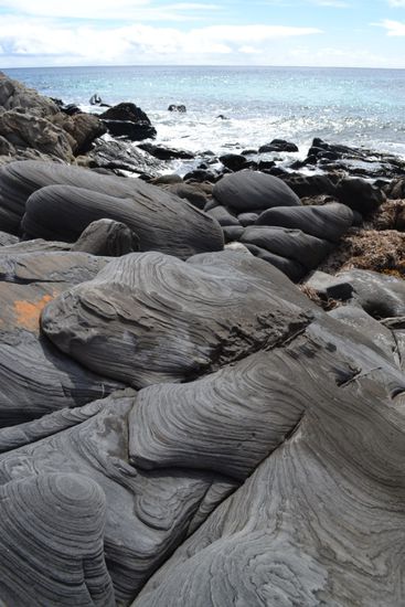 Am Nachmittag geht es in den Flinders Chase NP, Campground klarmachen (heute sind wir immerhin zu viert auf dem Patz) und dann ab zum beeindruckenden Felsbogen Admiral´s Arch und zu den Remarkable Rocks - durch Wind und Wasser nur sehr langsam verwitternde Granitbrocken mit sehr speziellen Formen.