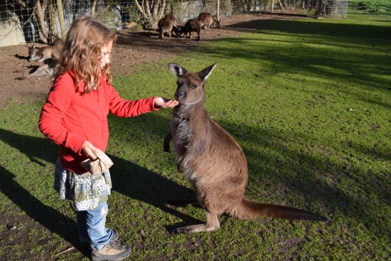 Am nächsten Morgen tanken wir und fahren dann auf einer Piste quer durchs Hinterland gen Cape Borda, den nordwestlichen Zipfel von Kangaroo Island. Wir bekommen zusammen mit einem italienischem Pärchen eine kurze Privatführung im Leuchtturm. Der Guide war anscheinend froh, heute nochmal Jemanden zu sehen. Ein kurzer Trail zu steilen Kliffs und in die früher einzige und abgelegene Zuliefer-Bucht zu den Leuchtturmfamilien -'Harveys Return' mit sehr schönen Fotomotiven runden den Besuch hier in der Einsamkeit ab. Auf dem Rückweg zur Fähre machen wir noch im Parndana Wildlife Park Halt und erleben Koalas und Kängurus hautnah zum Anfassen und Füttern - eine super schöne Erfahrung, besonders für die Kinder.