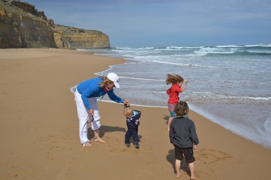 Wir fahren weiter Richtung Torquay - einer der Surf-Adressen in Australien (hier finden regelmäßig Surf-Events statt), die Kinder baden und wir beobachten die vielen Surf-Schüler um uns herum. Vielleicht probier' ich es mal in wärmeren Gefilden im Norden ;o)