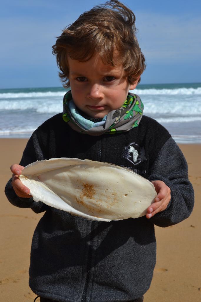 Somit starten wir wieder erst gegen Mittag und stoppen nach kurzer Fahrt in Apollo Bay, einem für guten Fisch bekannten schicken Zufluchtsort für Melbourner Outburner. Es gibt demnach Fish & Chips (Flake, ist wohl Hai...) und wir versacken erneut am schönen Strand - was gibt es Besseres zum Entspannen als das Rauschen des Meeres und begeisterte Kinder mit nassen Hosen.