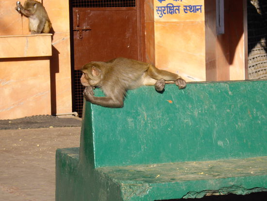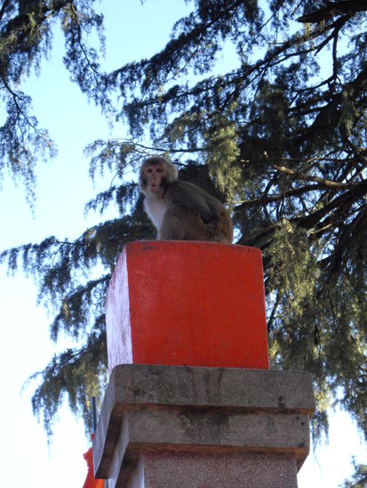 Nach einer ziemlich kalten Nacht haben wir uns am nächsten Morgen ganz früh aufgemacht zum Monkey Temple, der dem Gott Hanuman geweiht ist. Wieder steil bergauf und das am frühen Morgen. Oben angekommen machte er seinem Namen alle Ehre - Affen überall.