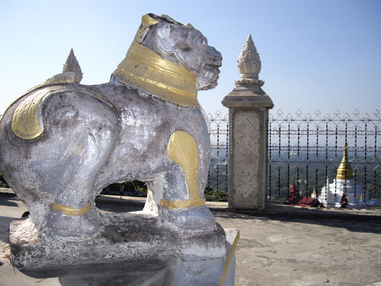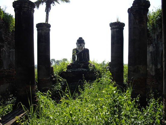 Dann weiter nach Inwa. Jeder, der in Mandalay das $ 10 Ticket für den Grand Palace und andere Sehenswürdigkeiten nicht gekauft hat, weil das Geld direkt an das Regime geht, der sollte auch Inwa beiseite lassen. Wir waren trotzdem dort, mussten aber für die Übersetzung per Boot 1000 Kyat und für die Pferdekutsche noch mal 5000 Kyat löhnen, dafür konnten wir den Fahrer überreden uns nur dahin zu bringen, wo man das $ 10 Ticket nicht braucht. Ist dann halt weniger... Wer ganz billig durchkommen will kann sich auch ein Motorrad mieten und das mit auf Inwa nehmen oder noch empfehlenswerter ein Fahrrad, dann spart man sich auch die Pferdekutsche.