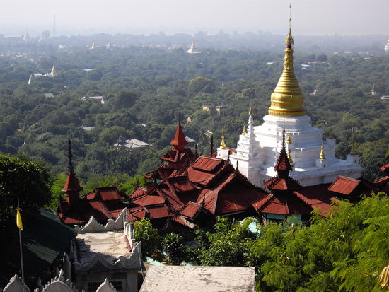 Für Tag 2 einen Pick Up für den ganzen Tag gecheckt um die umliegenden alten Städte zu erkunden. Sagaing, Inwaa und Amarapura. Zuerst nach Sagaing und auf den Sagaing Hill um die umliegenden 500 Stupas in der Sonne glänzen zu sehen.