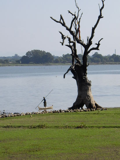 Die U'Bein Brücke in Amarapura ist dann wohl die meistfotografierte Sehenswürdigkeit Myanmars - sogar das Cover des Lonely Planet ziert sie. 1300 yd lang führt sie über den Taungthaman Lake und ist fast komplett aus Teakholz.