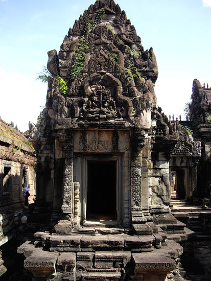 Noch schnell zu Baphuon, dem Puzzlespiel der Tempel: Für Restaurierungsarbeiten wurde der gesamte Tempel auseinander genommen, dann kam der Bürgerkrieg und die Khmer Rouge dazwischen und alle Daten wurden zerstört und Forscher mussten nach dem Krieg erst mal rauskriegen, was sie jetzt mit den 300.000 Steinen anfangen sollten. Habens aber ganz gut hingekriegt.