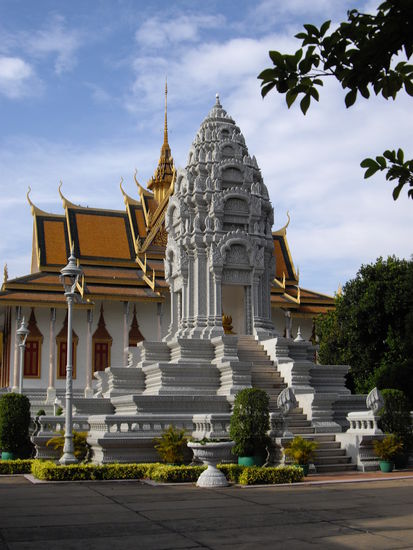 Nach einer kurzen Pause am Nachmittag weiter zum Golden Palace und zur Silver Pagoda. Der Palast ist auch jetzt noch Sitz des Königs und deshalb nur zum Teil zu besichtigen. Die Silver Pagoda hat ihren Namen nach den Bodenfließen, die aus massivem Silber gefertigt sind.