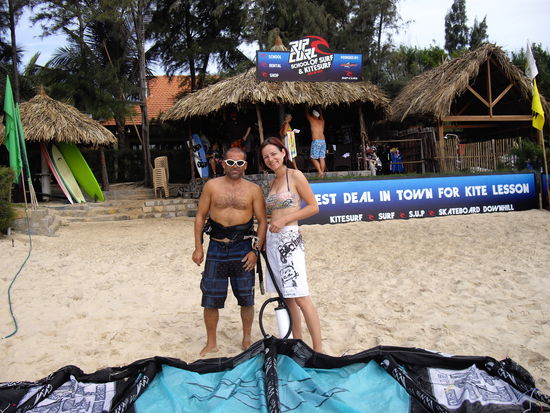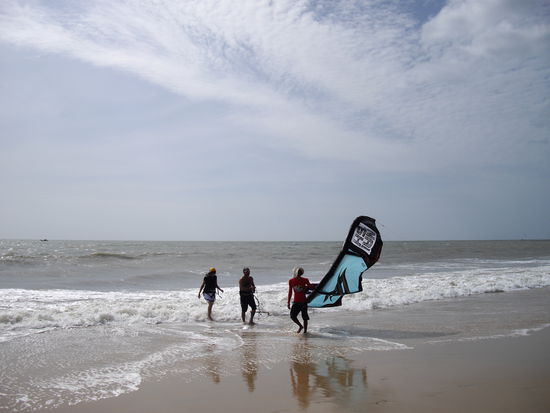 Mit dem Bus fahren wir am 15.12. nach Mui Ne, wo ich meinen lang ersehnten Kitesurfkurs machen möchte. Mui Ne ist weniger eine Stadt, als eine Ansammlung von Restaurants, Shops und Bars auf der linken Seite der Straße und von Guesthouses, Hotels und Resorts auf der rechten Seite der Straße, die auch zum Meer hin zeigt. Ein Lehrer ist schnell gefunden und Freitag Vormittag geht's los. Nach dem Übungskite der Übergang zum großen Kite und dann das erste Mal Body-Dragging im Wasser. Das ist das Beste überhaupt Ich lenke den Kite - mal mehr mal weniger - und mein Lehrer Emilio hält sich hinten an meinem Gurt fest und wir beide werden vom Kite durchs Wasser gezogen, mal links mal rechts, mal landet der Kite im Wasser und ich fluche...