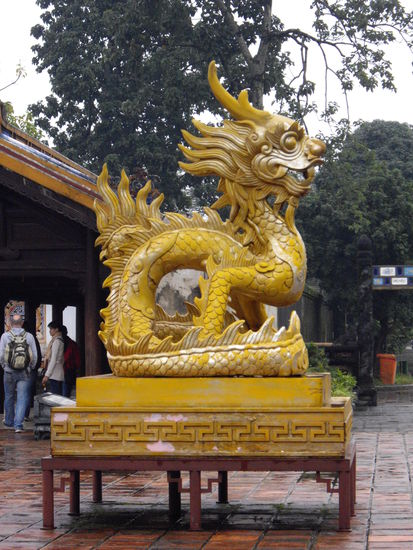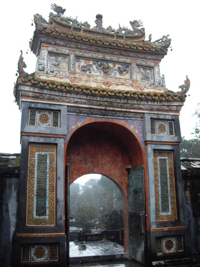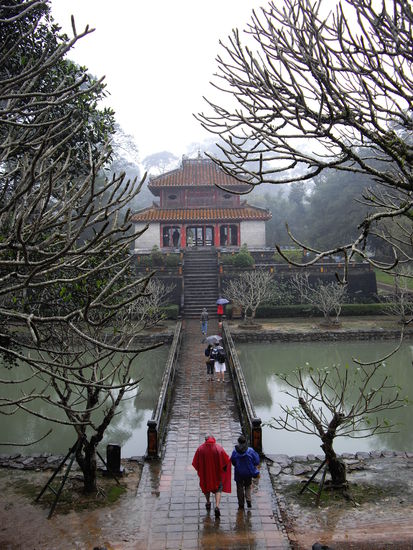 Nach dem Lunch - wie oben bereits näher beschrieben - geht's dann zu den Kaisergräbern. Das erste und auch weitläufigste ist das von Minh Mang. Bei Schönwetter kann man in der wunderbaren Parkanlage sicher lange Zeit verbringen, bei uns hatte es aber leider Regenwetter. Doch es ist schon beeindruckend, was sich Könige auch noch für ihren Tod so alles bauen lassen.