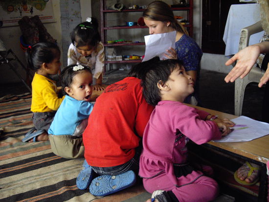 Am Nachmittag machen wir Community Work, d.h. wir besuchen die Familien der Kinder, die nicht zur Daycare gehen und versuchen ihnen zu vermitteln, wie wichtig das ist oder besuchen schwangere Frauen und fragen ob sie auch wirklich zum Arzt gehen, genug Hilfe haben, Vitamine und Eisenpräparate nehmen, etc. Man kommt sich zwar die meiste Zeit sehr überflüssig vor, weil ich ja so gut wie kein Hindi spreche und alles übersetzt werden muss und man auch das Gefühl hat, man redet zwar mit ihnen, aber ob das jetzt was ändert...