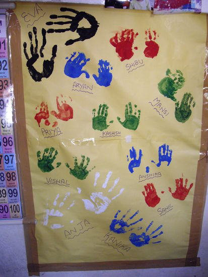 Montags (03.10.2011) haben wir uns alle Arbeitsplätze angesehen: Daycare (Kindergarten), Schulen und ein Heim für Behinderte. Ich habe mich für Daycare entschieden gemeinsam mit Eva. Wir gehen jeden Vormittag für 2 Stunden dorthin und versuchen eine Art von Routine dort hineinzubringen. Wir zeigen den Kindern wie man die Zähne putzt und dass man sich die Hände wäscht usw. Außerdem singen wir englische Lieder und versuchen ihnen Basics beizubringen wie "My name is..." oder Zahlen, Farben und das Alphabet. Es gestaltet sich wirklich schwierig, weil die Lehrerin und die Helferin dort meist uninteressiert sind und einfach nur rumsitzen und nichts tun wollen. Da die Kinder zwischen 2 und 4 Jahren alt sind und noch nicht mal ordentlich Hindi sprechen gestaltet sich das Ganze dort mehr als kompliziert und ohne Hilfe eines Projekt Executives - und da meine ich wirklich Kanika, die ein Goldschatz ist, alle anderen waren bis jetzt weniger hilfreich - wäre es nicht möglich. Nach den 2 Stunden die wir dort verbracht haben fühle ich mich jedes mal, als hätte ich 8 Stunden harte Arbeit hinter mir.