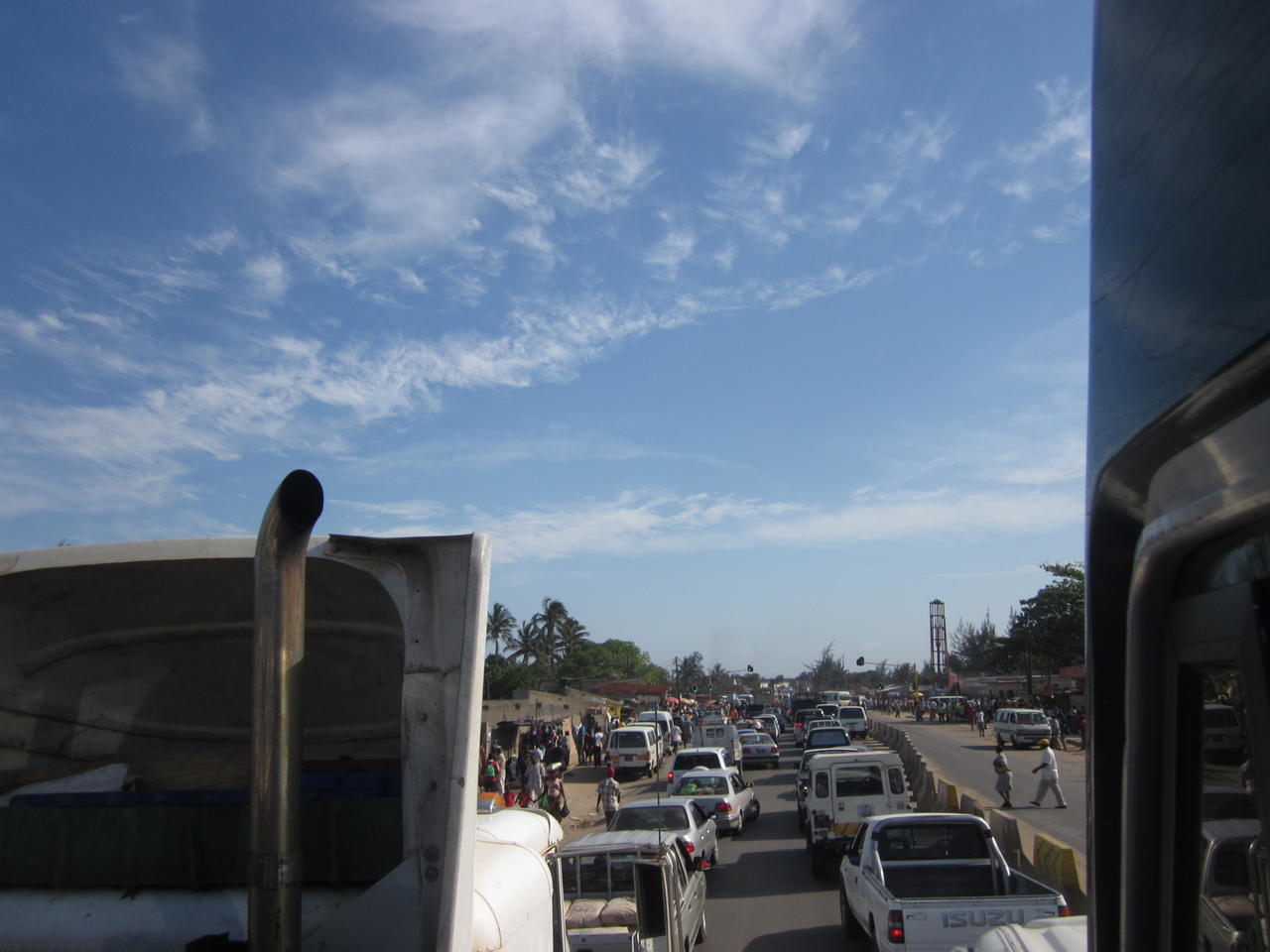 In der Stadt Maputo ist deftig was los. Auf den Strassen ist viel Verkehr. Am Strassenrand steht ein Marktstand nebem dem anderen.