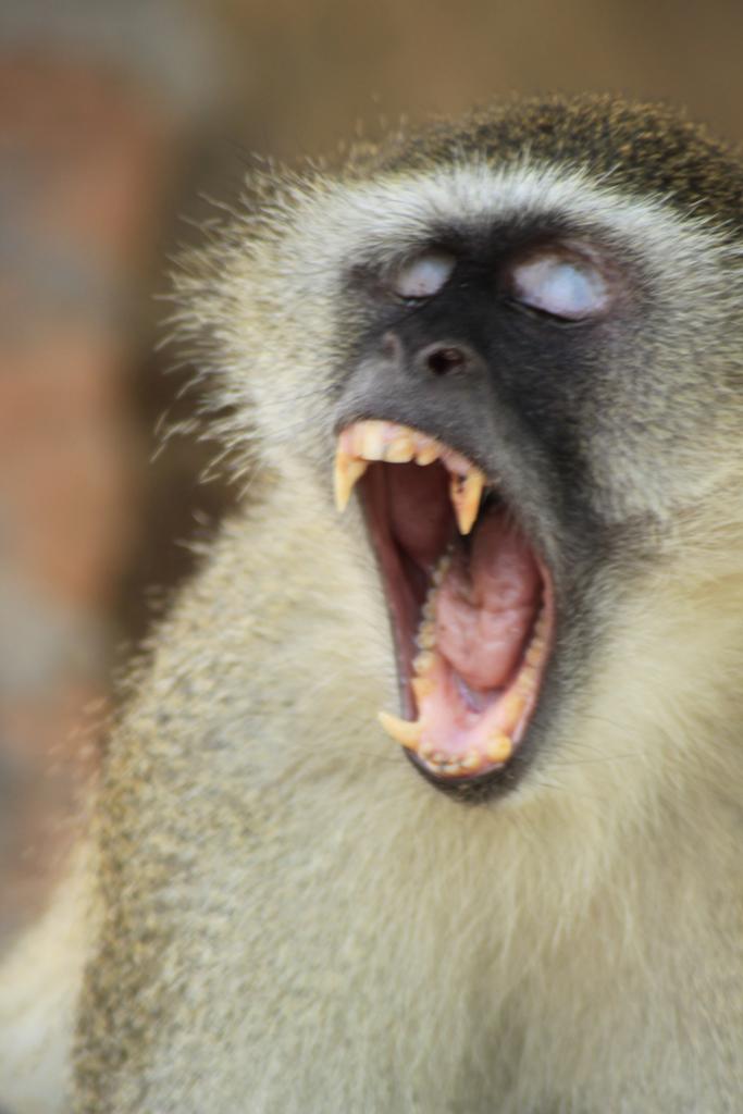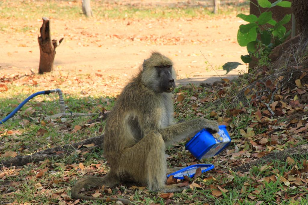 Es ging keine 5 Minuten da war schon eine ganze Gruppe Affe am Picknick - Tisch. Einer schnappte sich den Abfallsack und fischte sich den Glace Behälter, der nicht ganz leer war, heraus....